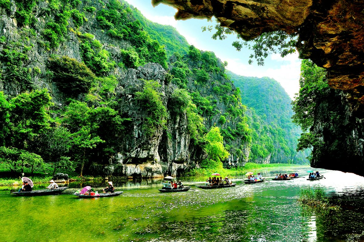 Tam Cốc, được mệnh danh là “Vịnh Hạ Long trên cạn”, đưa du khách lạc vào thế giới của những dòng sông uốn lượn qua các dãy núi đá vôi sừng sững. Ngồi thuyền len lỏi qua các hang động kỳ thú và cánh đồng lúa hai bên, bạn sẽ cảm nhận trọn vẹn nét thơ mộng của thiên nhiên.