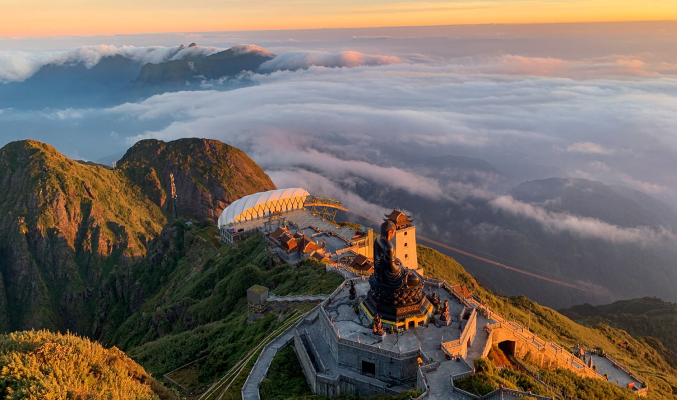 • Cuối cùng là sau khi đã vượt qua 600 bậc đá xanh, Quý khách đã lên tới đỉnh Fansipan trên độ cao 3.143m, nóc nhà của Đông Dương. Từ đây, phóng tầm mắt ra bốn bề xung quanh, mỗi người sẽ có những cảm xúc đặc biệt và những điều mong ước chỉ muốn giữ cho riêng mình.